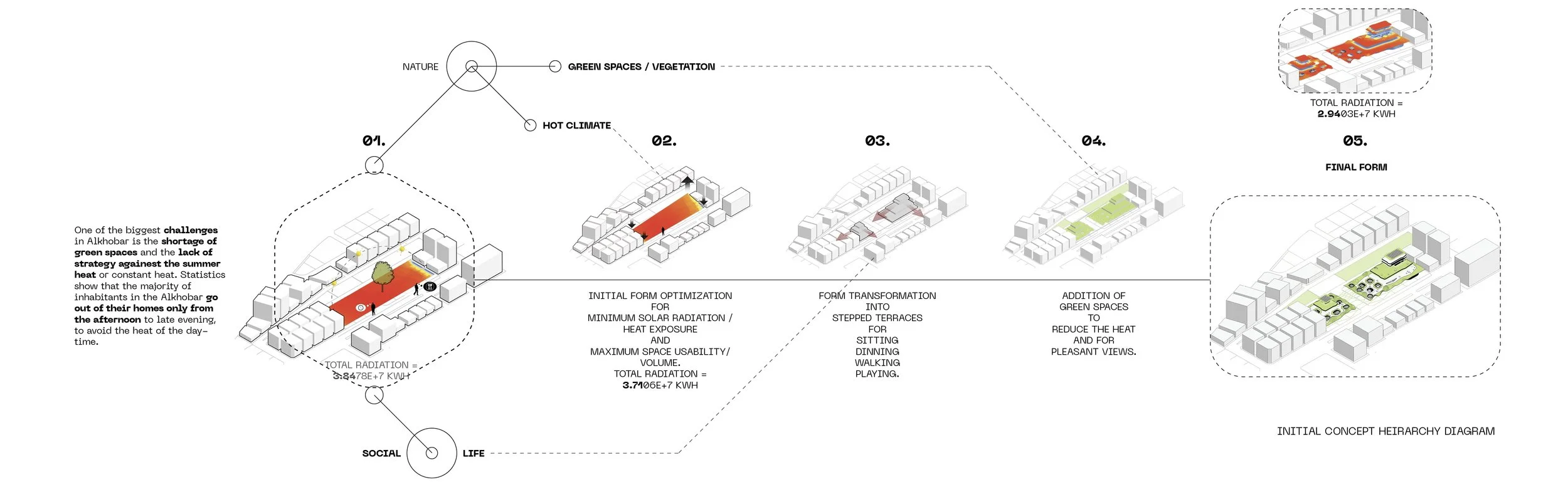 Kobarden is a new urban landmark in Al Khobar, Saudi Arabia. It´s a 20,000 sqm lifestyle and dining destination. Designed as a green urban retreat, it combines public gardens, plazas, and shaded terraces with curated mix of high-end restaurants, cafes, boutique F&B shops, and drive-thru. The project also features a dedicated kids entertainment zone and a private ladies gym, creating a complete family-oriented experience. With its stepped, landscaped architecture, Kobarden becomes more than a commercial center - it´s a cultural and social hub that redefines leisure in the city.