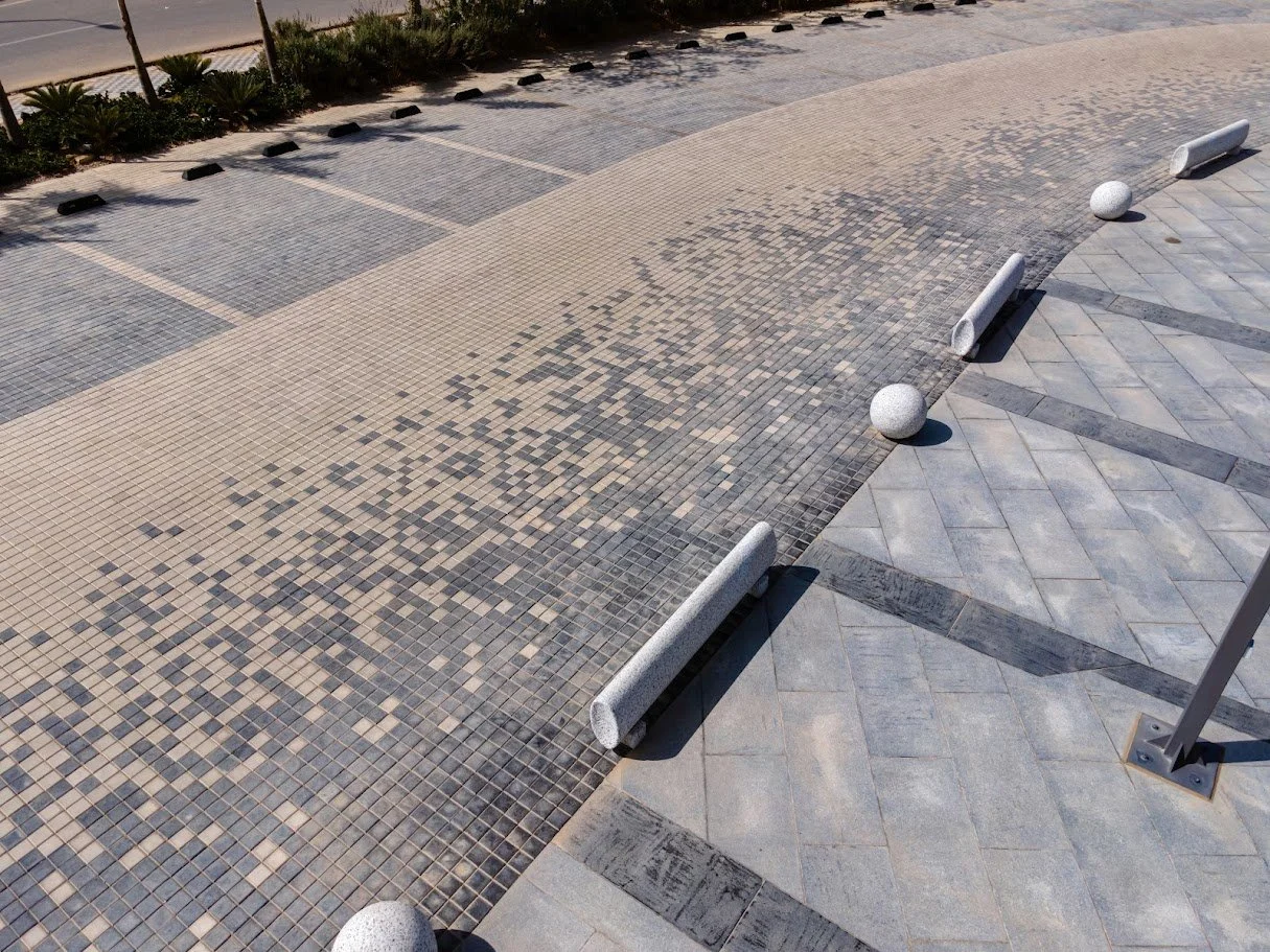 An unconventional landscape approach by our design team of architects and planners who developed soft and harmonious forms of local Egyptian granite masses to manage a safe public space for pedestrians and vehicles’ traffic.